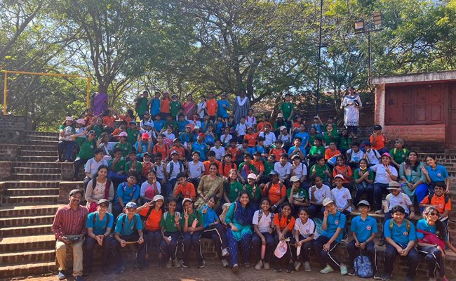 Students of grade VI visited Dakshinachitra as a part of the Utsav experience. At the campus, they voyaged through Andhra Pradesh, visiting an amiable weaver and learnt about the deep-rooted, traditional method of weaving sarees. Next, they saw the model of Karnataka house, where they caught sight of houses made entirely of stone. After that, they trotted through Kerala, where houses were embellished with murals and boats galore. Finally, stepping into Tamil Nadu, they went to the Ambur House, with its antiquated statues and manuscripts. They traversed through the Chettinad House that had a vast indoor courtyard and intricate architecture. All this within an hour! Soon after, they went bullock cart riding, enjoyed watching folk dances and amusing shadow-puppet shows and made manuscripts on palm leaves. The best of them all? The food served on banana leaves; they had a wide variety of foods like an Onam Sadhya. After a day crammed with fun, the children returned to their respective buses- and still not fatigued.