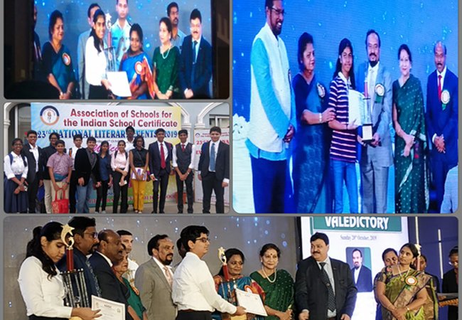 A six-student team from Hari Shree travelled to Hyderabad to participate in the ASISC National literary events. Mahi Bajaj and Vinaayak Dasika of grade VIII bagged the first place in the Sub Junior Quiz and they received their award from the Honourable Governor of Telangana, Miss. Tamilisai Soundararajan. Smriti Krishnan from Grade VIII came second in the Sub Junior Declamation. Shashank S of grade VIII and the team of Saranesh Kanna and Shrikha from grade XII received a participation certificate in Sub Junior Painting and Senior Quiz category respectively.