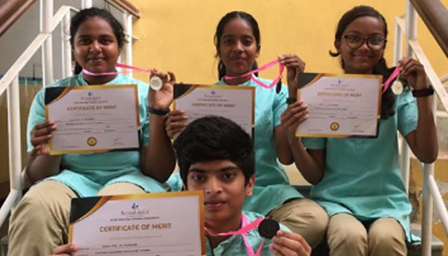 Harshini & Riddhi won silver medals, Chetna & Dhiraj won bronze medals in the National Art Competition conducted by Schoolsindia.
