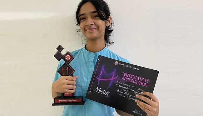Kiara Elaina from grade XI participated in Chettinaad Vidyashram’s cultural programme, ‘Maitri’ and secured the 3rd place in the poster making competition.