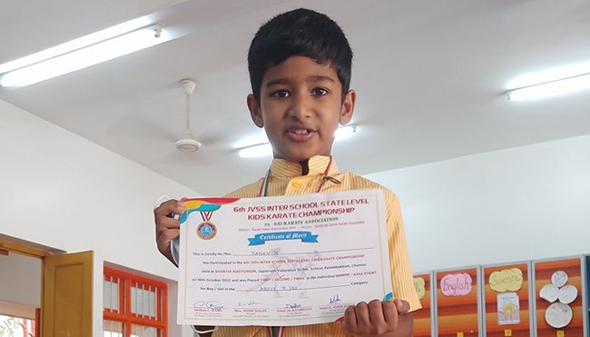 A Yohan Jain from grade IV won the 6th place in the JGM Open Rapid Chess Tournament – 2022 conducted by Jaigopal Garodia Memorial.