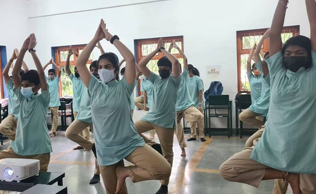 A video recording by students was played in class for students and acharyas to practice different asanas to commemorate International Yoga Day. It was a great opportunity for the whole school to come together on this day and continue their journey toward mindfulness and bring equilibrium in their bodies.