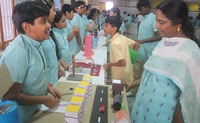 The students of the middle school and grades IX and XI put up a Math Expo for their peers and acharyas. The students explored the influence of math in every sphere of life, be it nature, game, art, history, medicine, food or space. They explained their models and the complex concepts with ease to everyone who visited their desk. This exhibition enabled the students to gain a deeper understanding of Math and also provided them with the platform to apply their learning and showcase their knowledge.