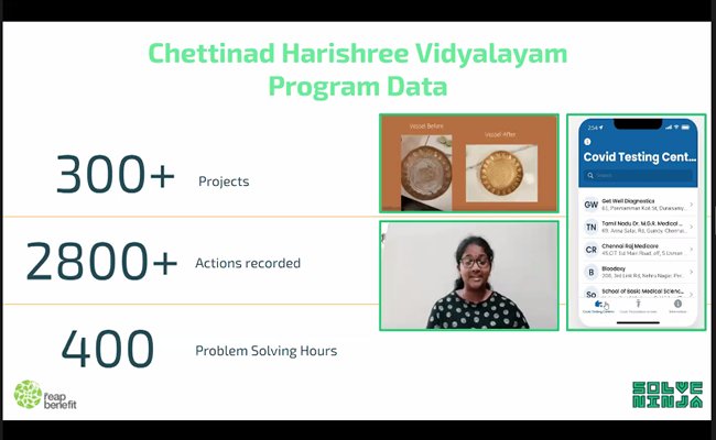 Children of Grades VI to VIII and IX & XI found a myriad of solutions for various issues ranging from Covid precautionary measures to environmental and civic issues, using the DISS method (Discover, Investigate, Solve, Share). They shared their experiences of reporting actions, developing Awareness Apps and working prototypes throughout the year, during the culmination of the Global Citizenship (GC) sessions for the year.