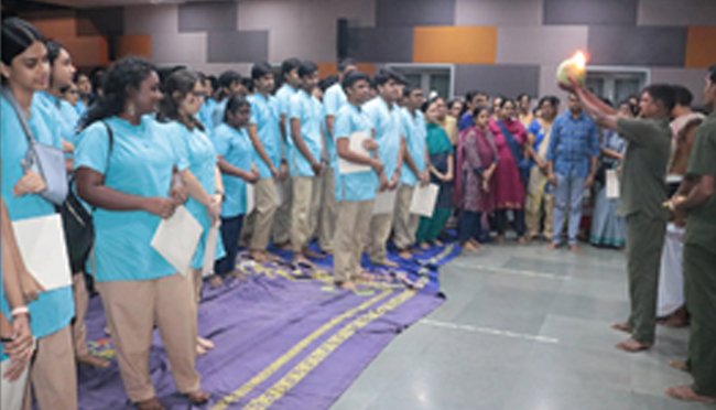 Auspicious pooja and seeking blessings from the Almighty, acharyas and parents before the Board exams.
