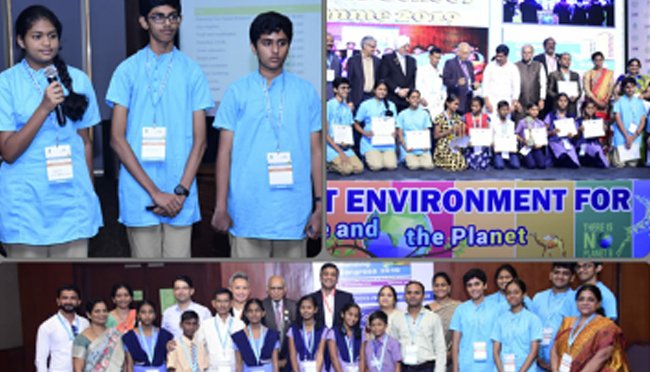 As part of the ‘make your school greener’ competition, conducted by the Indian Green Building Council, ten ideas were presented to make our school eco-friendlier, focusing on the main objectives of renewable energy, water efficiency, waste management, better environment quality and green education. From among the presentations of over eight hundred participating schools, ours was chosen as one of the top three by the jury. The second round of the competition was held in Hyderabad. It was a three-day conference. We had the opportunity to showcase our presentation to the jury. After our presentation, we were quizzed by the judges to eventually convince them of implementation of our ideas. Prize money of four lakhs was given to the three winning schools. IGBC will conduct regular audits before rating the schools a “Green Building” under the silver, gold or platinum category. Hari Shree was given the award for ideas most beneficial to both school and society. – Tejas, Sricharan Komateswar, Pranav Arcot, G Hamsini, Mekala Bala Gopal and Vidyuth T