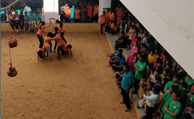 The highly anticipated Inter-House Matka Breaking event saw students from the four houses of grades 9-12 vying to break the pot first. With just a few days of practice, they were able to build pyramids and break the matkas deftly, all in a matter of seconds. Individual events were also conducted and students participated with equal enthusiasm. All the corridors were lively as the whole school gathered to cheer for their houses during this adrenaline-pumping event.