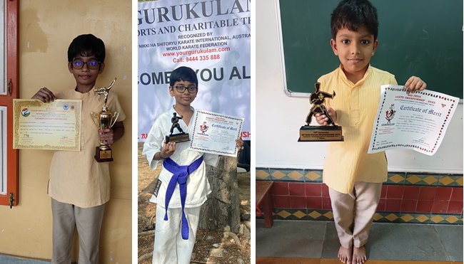 Dev Amudhan Venkatesh of grade II won 1st place in All India Karate Championship -2023 conducted by Gurukulam sports and charitable trust.