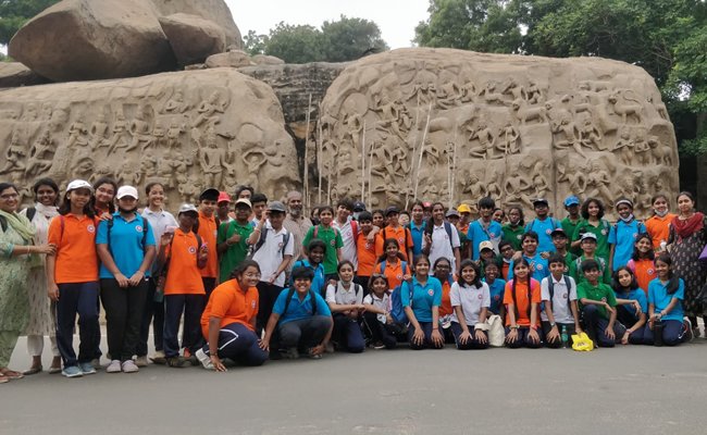 Utsav is all about learning our country’s culture and heritage. For grade VII, there was an exciting and informative field trip to Mahabalipuram wherein the students visited a lot of interesting sites. The journey started off by going to Salavan-Kuppan-Subramanya temple which is the oldest temple in Tamil Nadu for lord Subramanya. They visually described the history of the temple. The temples built by Mahendra Pallava within rocks carved out had interesting and informative inscriptions. The next stop was at the Tiger cave which was very spectacular to look at with its unique style of architecture. The next monument had carvings to show a big wall depicting Arjuna’s penance. The last stop for the day was at Krishna’s butter ball which was fascinating because of the incredible position of the huge rock to perfectly balance on the steep slope. At the end of the day it was a very memorable experience which everyone would remember for a lifetime.