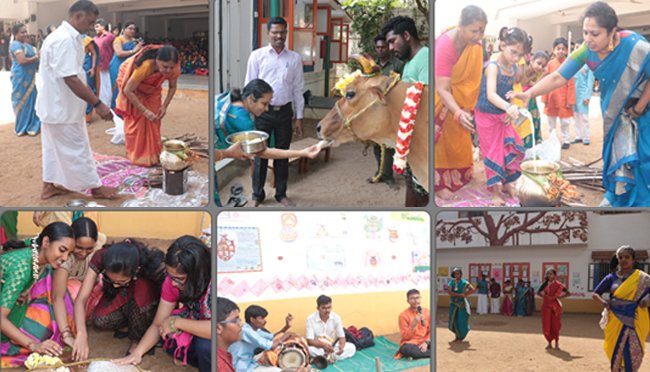 Amidst great fervour and enthusiasm, it was a traditional Pongal, the Hari Shree way. The grounds became a village courtyard decorated with rangoli and thoranams. The excitement on everyone’s faces turned to sheer joy at the sight of the cow and calf. Our Principal, acharyas and akkas and annas performed the pooja, to invoke the blessings of the Sun God at this auspicious time. Every minute detail was attended to, including worshipping the cow, cooking pongal in a vengala panai and distributing sugar cane to our students. The cultural programs in Tamil presented by our students made it a delightful day. At the end of the day we got to eat juicy sugarcane and lip smacking sakkarai pongal.