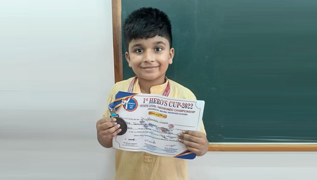 M V Adhvaidh from grade III won a bronze medal in Taekwondo competition.