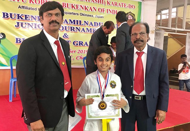 K.Avaneesh of class 6 sembaruthi, participated in the Tamil Nadu state level karate tournament and bagged the third plac